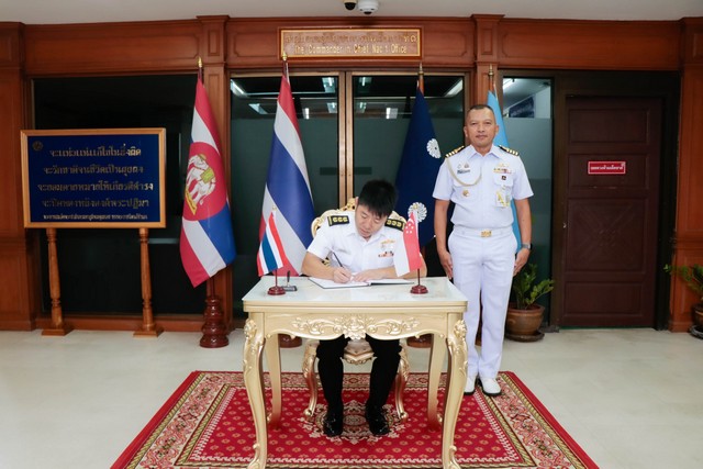 วันที่ 30 ตุลาคม 2568 พลเรือโท เฉลิมชัย สวนแก้ว ผู้บัญชาการทัพเรือภาคที่ 1 ให้การต้อนรับและรับการเยี่ยมคำนับจากพันเอก Carlin Song ผู้บังคับการเรือหมู่เรือที่ 1 กองทัพเรือสิงคโปร์ เนื่องในโอกาสที่เรือกองทัพเรือสิงคโปร์ จำนวน 2 ลำ ได้แก่ เรือ RSS VIGILANCE และเรือ RSS INTREPID เดินทางมาเยือนประเทศไทย