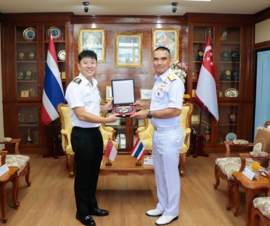 ผู้บัญชาการทัพเรือภาคที่ 1 รับการเยี่ยมคำนับจากผู้บังคับการเรือหมู่เรือที่ 1 กองทัพเรือสิงคโปร์