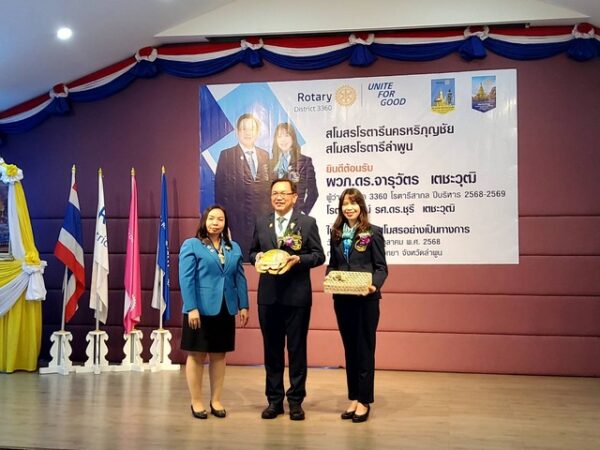 เมื่อวันที่ 31 ต.ค. 68 สโมสรโรตารีหริภุญชัย และ สโมสรโรตารีลำพูน ได้ร่วมกันต้อนรับ นายจารุวัจร เตชวุฒิ ผู้ว่าการภาค 3360 โรตารีสากล และ นางชุลี เตชวุฒิ โรตารีแอนน์ ในการเยี่ยมสโมสรอย่างเป็นทางการ