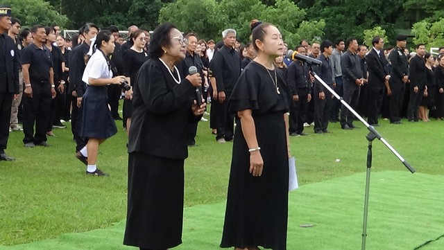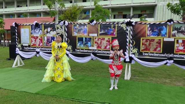 นอกเหนือจากการรวมพลังถวายความภักดีและพิธีกล่าวคำอาลัยแล้ว สิ่งที่สร้างความซาบซึ้งและแสดงออกถึงความสำนึกในพระมหากรุณาธิคุณอย่างลึกซึ้ง คือการแสดงถวายอาลัยจากนักเรียน โรงเรียนวัดสระแก้วรุ่งโรจน์ธนกุลอุปถัมภ์ ซึ่งมีการแสดงอันทรงคุณค่าทางวัฒนธรรม ได้แก่ การแสดงโขน และ การแสดงลิเก เพื่อเป็นการน้อมรำลึกถึงพระมหากรุณาธิคุณในด้านการส่งเสริมศิลปวัฒนธรรมไทยของพระองค์ท่าน