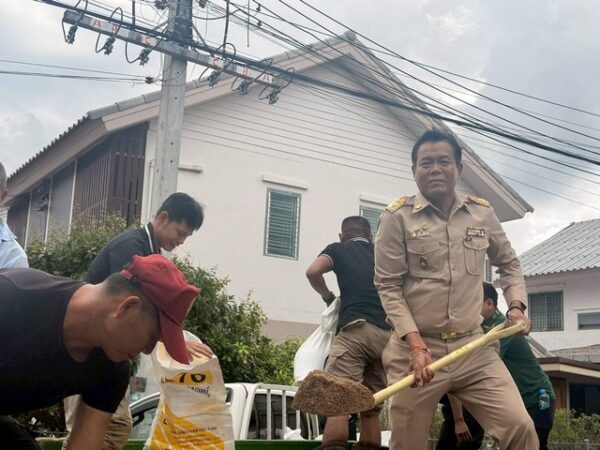 จากนั้นเวลา 11.30 น.วิทยา ปัญจมาตย์ ผอ.สจป.4 (ตาก) พร้อมด้วยนายวรกิจ โตจำเริญ ผอ.ส่วนป้องกันรักษาป่าและควบคุมไฟป่า เจ้าหน้าที่ส่วนป้องกันฯ และเจ้าหน้าที่ส่วนที่เกี่ยวข้องได้ลงพื้นที่ เพื่อช่วยเหลือผู้ประสบภัย พร้อมร่วมกันกรอกกระสอบทรายช่วยเหลือประชาชนในพื้นที่หมู่ 8 ต.น้ำรึม อ.เมือง จ.ตาก หลังจากเกิดฝนตกหนักและมีน้ำท่วมขังหลายพื้นที่