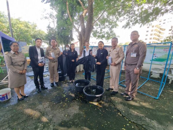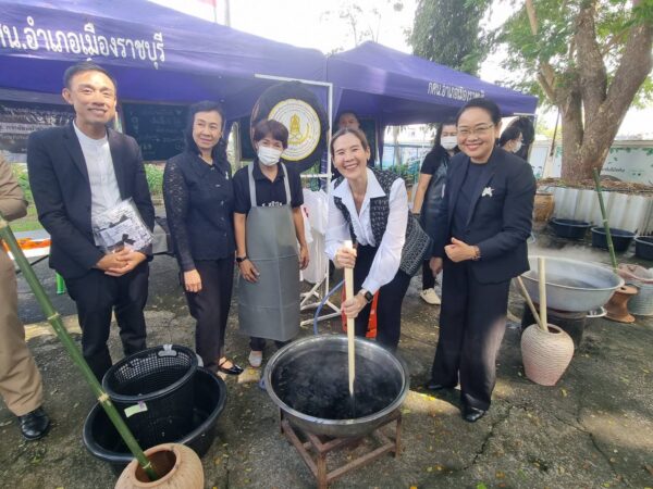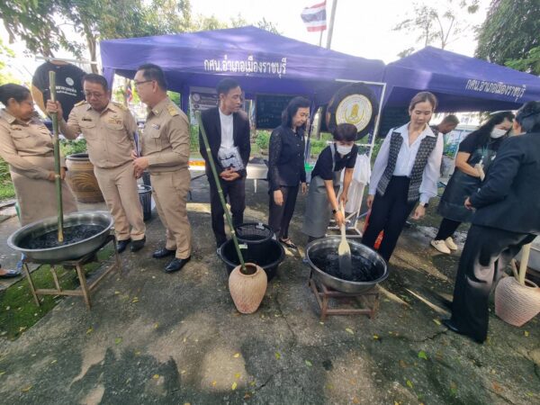 ราชบุรี- จัดกิจกรรมย้อมผ้า–ทำริบบิ้นสีดำ แสดงความอาลัยสมเด็จพระพันปีหลวง สร้างความสามัคคีและสืบสานภูมิปัญญาชุมชน