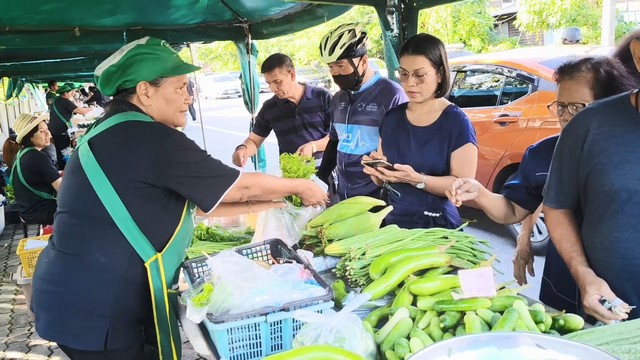 สงขลา-พ่อค้าแม่ค้า ในตลาดเกษตรกรจังหวัดสงขลา เข้าโครงการคนละครึ่งพลัสทั้งตลาด
