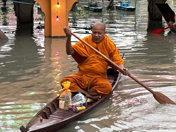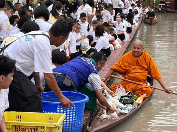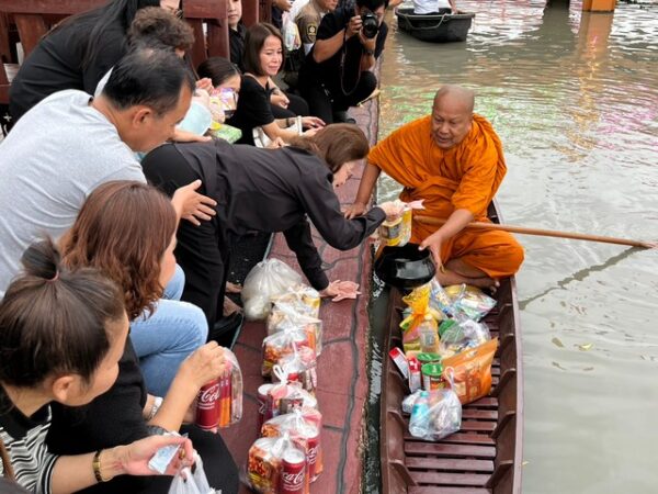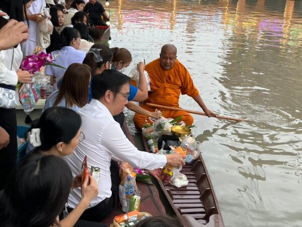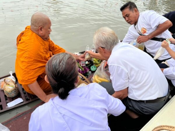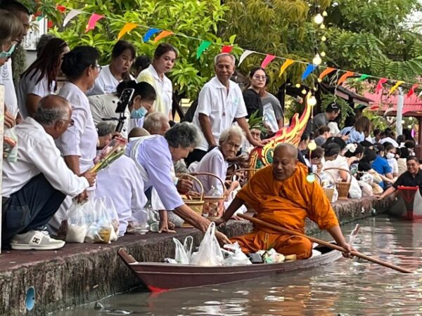 สมุทรปราการ-เจ้าคุณแจ้ พายเรือบิณฑบาตรทางน้ำโปรดญาติโยม ประชาชนกว่า 1,000 คน ร่วมใส่บาตร