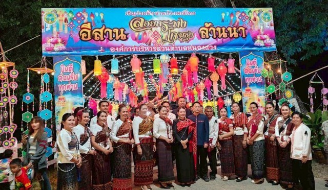 ประชาชน นักท่องเที่ยว แห่ร่วมงานสืบสานประเพณีลอยกระทงโคมธุง นุ่งผ้าไทย ใส่ผ้าท้องถิ่น เอกลักษณ์ไทย ที่หนองคูทด หนองน้ำเฉลิมพระเกียรติ อบต.3หนองแวง อ.สมเด็จ จ.กาฬสินธุ์ พร้อมน้อมรำลึกพระมหากรุณาธิคุณและถวายความอาลัย สมเด็จพระนางเจ้าสิริกิติ์ พระบรมราชินีนาถ พระบรมราชชนนีพันปีหลวง และขอขมาพระแม่คงคาเทวี สิ่งศักดิ์สิทธิ์แห่งสายน้ำตามความเชื่อ เพื่อเสริมสิริมงคลแก่ชีวิต