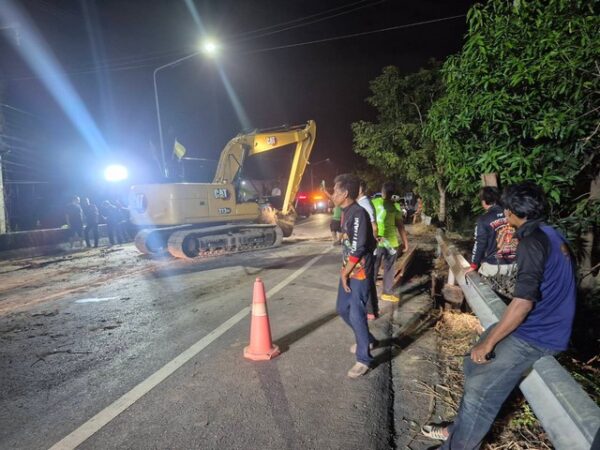 ด้านพล.ต.ท.คำรณวิทย์ ธูปกระจ่าง นายกอบจ.ปทุมธานี กล่าวว่าซึ่งตนเองมาดูแล้วซึ่งเป็นแบบนี้หลายจุดไม่ใช่จุดนี้จุดเดียว เราก็เฝ้าระวังกันอยู่เพราะขณะนี้น้ำเยอะมาก แต่ตรงจุดนี้นั้นได้นำแผ่นเหล็กมากั้นน้ำและนำดินมาอุดตรงที่น้ำรั่วก่อนพร้อมกันนี้จะมีการเปิดผิดถนนเพื่อซ่อมแซมส่วนที่น้ำกันเซาะ ส่วนเรื่องสาเหตุที่ว่ามีการขุดท่อประปานั้นตอนนี้เราอย่าไปโทษใครเลย เราแก้ปัญหาให้กับพี่น้องประชาชนก่อน และตรงจุดนี้ต้องดำเนินการซ่อมแซมให้เสร็จคืนนี้