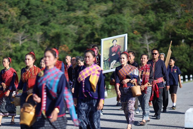 เมื่อวันที่ 7 พฤศจิกายน 2568 ที่บริเวณอ่างเก็บน้ำวังคำ ต.กุดตอแก่น อ.เขาวง จ.กาฬสินธุ์ โดยสภาวัฒนธรรมอำเภอเขาวง พร้อมด้วยพสกนิกรชาวอำเภอเขาวง และตัวแทนชาวบ้านจาก 7 ตำบล ได้ร่วมแต่งกายในชุดพื้นเมืองผู้ไทยเขาวง ร่วมกันถือพระบรมฉายาลักษณ์ สมเด็จพระนางเจ้าสิริกิติ์ พระบรมราชินีนาถ พระบรมราชชนนีพันปีหลวง เดินน้อมถวายความอาลัย 15 วัน แห่งการสวรรคต (ปัญรสมวาร) สมเด็จพระพันปีหลวง ด้วยสำนึกในพระมหากรุณาธิคุณอย่างหาที่สุดมิได้ ขึ้นไปบริเวณอ่างเก็บน้ำวังคำ