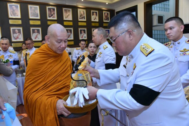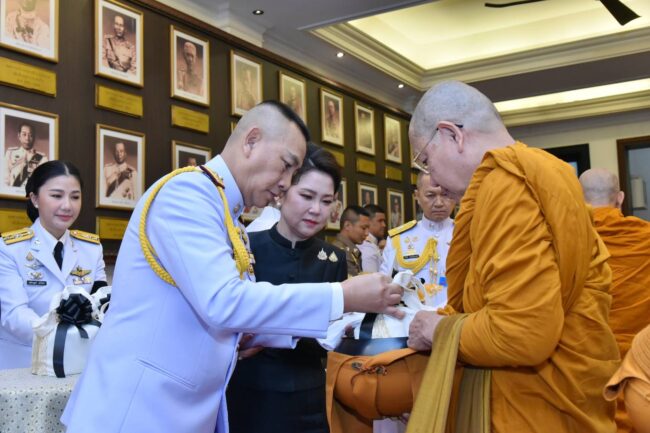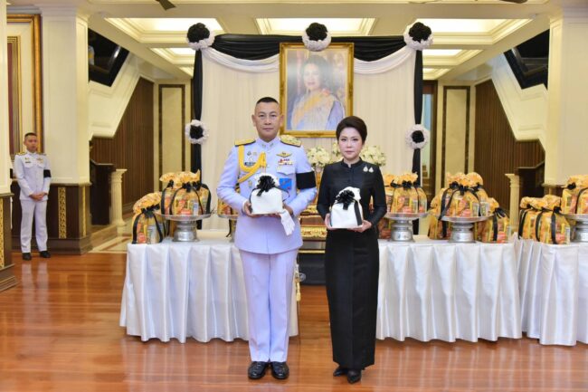 ทั้งนี้ คณะสงฆ์ 10 รูป ประกอบพิธีบำเพ็ญกุศลปัณรสมวาร จากนั้น ผบ.ตร. และนายกสมาคมแม่บ้านตำรวจ นำคณะตักบาตรพระสงฆ์ เพื่อถวายเป็นพระราชกุศลฯ