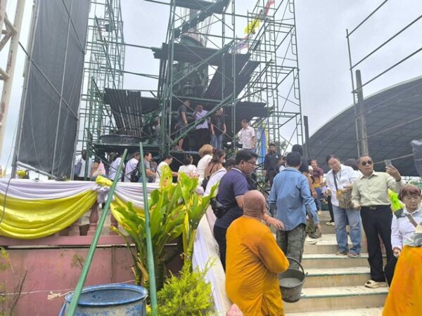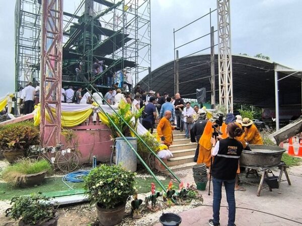 ส่วนในวันที่ 9 พ.ย. 68 เวลา 08.00 น. พิธีบวงสรวง เวลา 09.00 น. เริ่มเทปูนหล่อองค์พระพุทธรูปปาวยืนประทานพรเปิดโลกเสาร์ 5