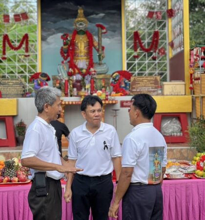 คณะทำงานรองเลขาธิการนายกรัฐมนตรี พร้อมด้วยกรรมการหมู่บ้านจัดพิธีบวงสรวงพ่อท้าวเวสสุวรรณสิ่งศักดิ์สิทธิ์ที่เป็นจุดศูนย์ร่วมจิตใจของทุกคนประจำหมู่บ้านหมู่บ้านมิตรประชาวิลล่าพร้อมกันมาร่วมพิธี