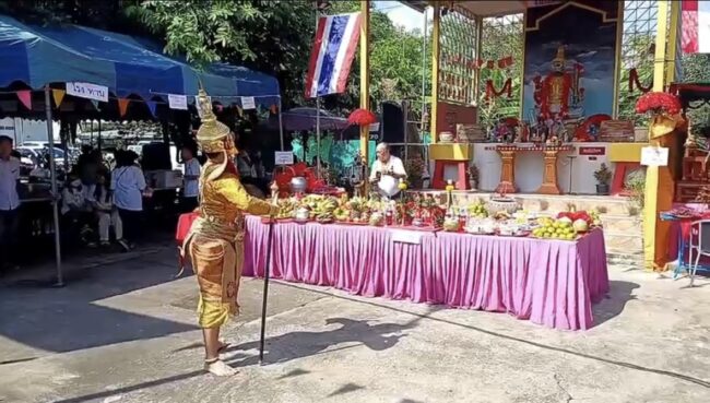โดยมี พิธีถวายเครื่องไหว้ อาหารหวานคาวและองค์พ่อท้าวเวสสุวรรณ และมีการถวายรำ