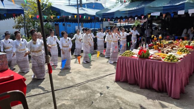 ประกอบพิธีทางสงฆ์และถวายภัตตาหารเพลแด่พระภิกษุสงฆ์ 9 รูป โดยกิจกรรมงานบุญในครั้งนี้มีผู้ใจบุญมาเปิดโรงทานมาให้ร่วมงานทุกท่านฟรีตลอดงาน