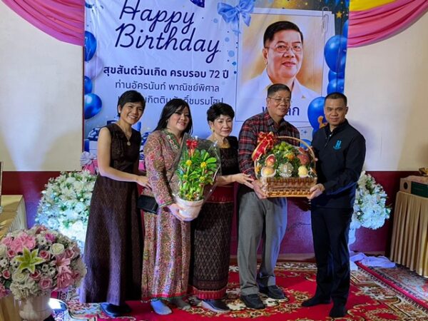 บรรยากาศเป็นไปอย่างอบอุ่น โดยมีแขกผู้มีเกียรติจากหลายภาคส่วนมาร่วมอวยพร และนำกระเช้าดอกไม้แสดงความยินดีจำนวนมาก ทั้งนี้ ครอบครัวพาณิชย์พิศาลได้ร่วมทำบุญถวายเครื่องซักผ้าให้กับวัดมหาวงษ์ จำนวน 3 เครื่อง และมอบโรงศพ 100 ใบ ให้แก่พุทธสมาคมเต็กก่าจีแชเกาะ อำเภอชุมแพ จังหวัดขอนแก่น เพื่อใช้ในกิจการสาธารณกุศล