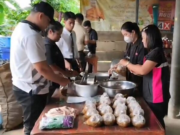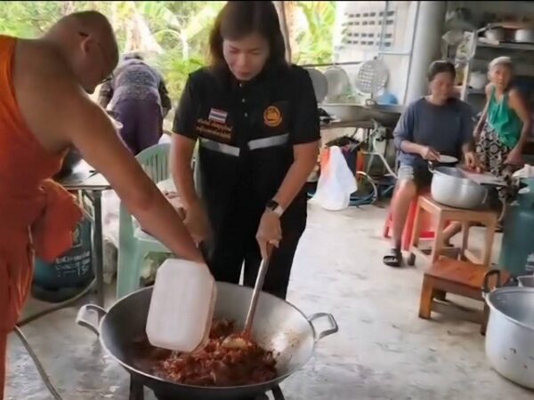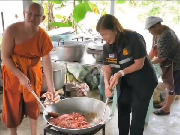 สุโขทัย เจ้าอาวาสขนเครื่องครัวออกจากวัดหลังน้ำท่วมหนัก ต้องอาศัยบ้านชาวบ้านตั้งโรงครัวรช่วยชาวบ้าน รองผู้ว่าช่วยปรุงอาหาร