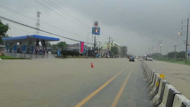 ต่อมาน้ำได้เพิ่มขึ้นจากความสูง 30 เซ็นติเมตรเป็น 50 เซนติเมตร จนต้องประประกาศปิดการจราจรถนนสาย 33 (ป่าโมก-สุพรรณฯ)บริเวณสถานีบริการน้ำมัน PTT (เอกราช) จนถึงแยกเหมู่บ้านทำกลอง ระยะทาง 500 เมตร โดยทางจังหวัดอ่างทอง แขวงทางหลวงอ่างทอง และส่วนเกี่ยวข้อง จัดทำแนวคันกั้นน้ำถนนสาย 33 (ป่าโมก-สุพรรณฯ) เพื่อจะได้เปิดการจราจรได้อย่างรวดเร็ว