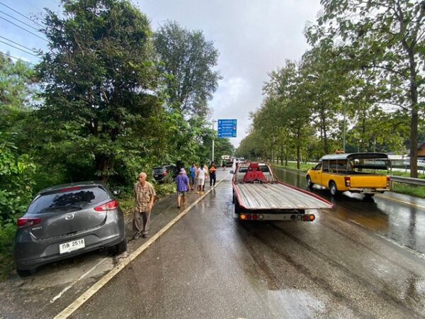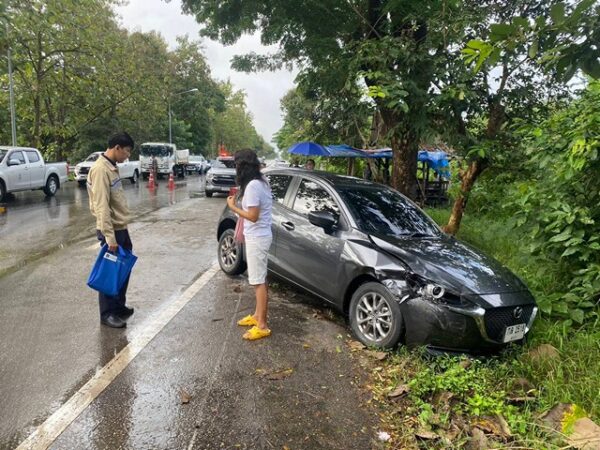 ลำปาง-ฝนตกถนนลื่นยางมะตอย! รถชนระนาว 12 คัน ถนนลำปาง–งาว เจ็บ 4 ราย
