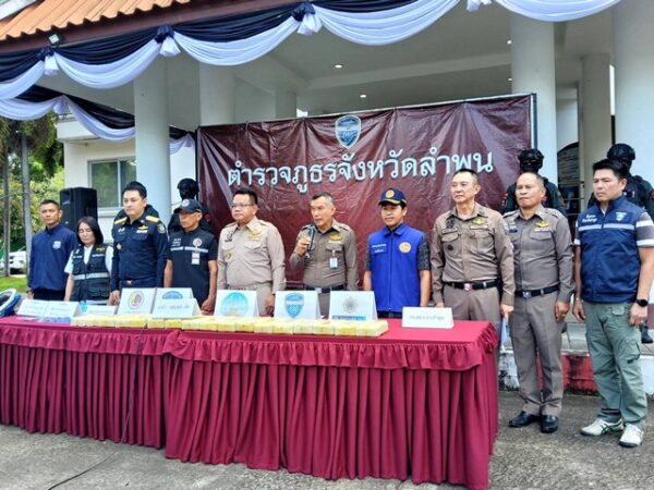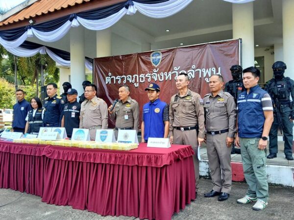 ลำพูน – ตำรวจภูธรจังหวัดลำพูน ร่วมกับจังหวัดลำพูน ร่วมกันแถลงข่าวการจับผู้ค้ายาเสพติดรายสำคัญ โดยมีของกลางยาบ้าจำนวนมาก