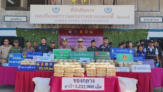 โดยเจ้าหน้าที่สามารถตรวจยึดยาเสพติดให้โทษประเภท 1 (ยาบ้า) จำนวน 3,232,000 เม็ด พร้อมของกลางประกอบด้วย รถยนต์กระบะยี่ห้อโตโยต้า รุ่นวีโก้ 4 ประตู สีดำ หมายเลขทะเบียน ขน 9608 อุดรธานี, แม็กกาซีนปืน 1 ชิ้น และเครื่องกระสุนขนาด 11 มม. จำนวน 13 นัด