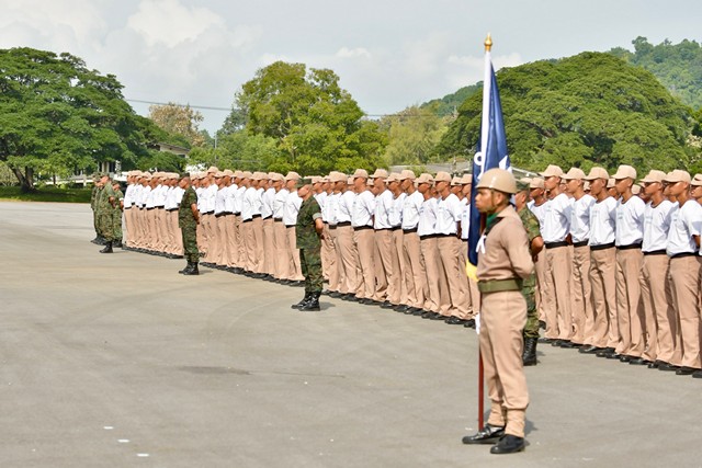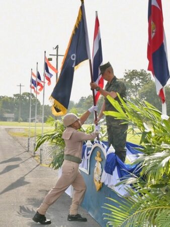 โอกาสนี้ ผบ.ศฝท.ยศ.ทร. ได้มอบธงอันเป็นสัญลักษณ์ประจำหลักสูตร และให้โอวาทเพื่อเป็นแนวทางในการฝึกอบรมฯ ความว่า “…การที่ท่านได้เข้ามารับราชการทหารเรือ นั้น นอกจากจะเป็นการปฏิบัติตามหน้าที่ของลูกผู้ชาย ตามที่กฎหมายกำหนดไว้ประการหนึ่งแล้ว ยังถือว่าท่านเป็นผู้ที่มีความเสียสละอย่างยิ่ง ที่ต้องห่างจากบ้าน และครอบครัวอันเป็นที่รัก เพื่อมารับใช้ประเทศชาติ ในห้วงการฝึกหลักสูตรทหารใหม่ ภาคสาธารณศึกษา 2 เดือน นั้น มีวัตถุประสงค์เพื่อปรับสถานะ จากพลเรือนให้เป็นทหารเรือ ที่เข้มแข็ง องอาจ สง่างาม มีเกียรติ และศักดิ์ศรี มีความพร้อมที่การปฏิบัติหน้าที่ของทหาร ตลอดระยะเวลาการฝึกจะมีความเข้มงวด จริงจัง แต่จะอยู่ภายใต้กรอบของความเมตตา ความปรารถนาดี