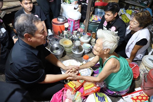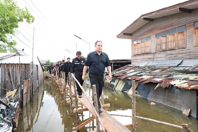 ปทุมธานี ลงเยี่ยมให้กำลังใจคุณยายพิการวัย 82 ในพื้นที่น้ำท่วม พร้อมให้กำลังใจเจ้าหน้าที่และประชาชนจิตอาสา ร่วมกันบรรจุกระสอบทรายทำคันกั้นน้ำ