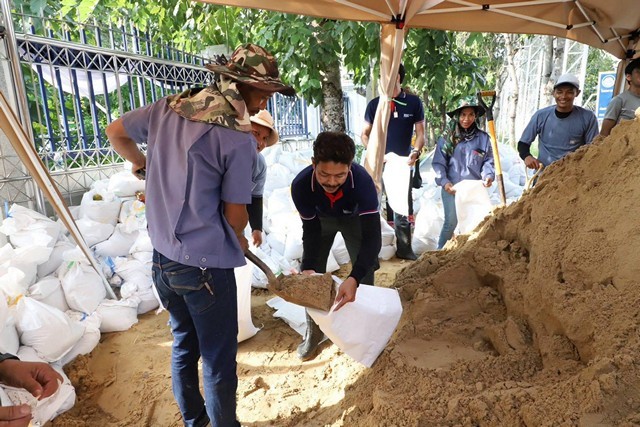โอกาสนี้ ผู้ว่าราชการจังหวัดปทุมธานี ยังได้ตรวจเยี่ยมให้กำลังใจ และขอบคุณเจ้าหน้าที่ และจิตอาสา จากสมาชิกกองอาสารักษาดินแดน อำเภอเมืองปทุมธานี กองพันทหารสื่อสารที่ 13 กองพลทหารปืนใหญ่ต่อสู้อากาศยาน เจ้าหน้าที่เทศบาลตำบลบ้านใหม่ กำนัน ผู้ใหญ่บ้านและประชาชน ที่ร่วมกันบรรจุกระสอบทราย เพื่อนำไปทำคันกั้นน้ำ ณ เทศบาลตำบลบ้านใหม่ อำเภอเมืองปทุมธานีอีกด้วย