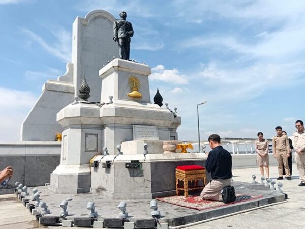 ก่อนจะเดินทางไปกราบสักการะพระพุทธชินราชมงคลปราการ ภายในวิหาร ใกล้ศาลากลางจังหวัดสมุทรปราการและเข้ากราบสักการะพระอนุสาวรีย์พระบาทสมเด็จพระจุลจอมเกล้าเจ้าอยู่หัว รัชการที่ 5 บริเวณริมเขื่อนหน้าศาลากลางจังหวัดสมุทรปราการ เพื่อความเป็นสิริมงคลก่อนเข้ารับตำแหน่งอย่างเป็นทางการ