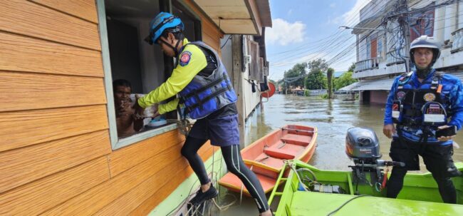 มูลนิธิป่อเต็กตึ๊ง นำโดย อาสาสมัครกู้ภัยจุด สภ.อินทร์บุรี ท่าช้าง และบางระจัน ยังคงผนึกกำลังสู้ภัยน้ำท่วมต่อเนื่อง! จัดตั้งกองอำนวยการรับแจ้งเหตุ-ช่วยเหลือ อพยพ แจกจ่ายถุงยังชีพ และอาหารปรุงสุกบรรจุกล่องพร้อมน้ำดื่ม อาหารสุนัขและแมว แก่ผู้ประสบภัยน้ำท่วมในพื้นที่จังหวัดสิงห์บุรี