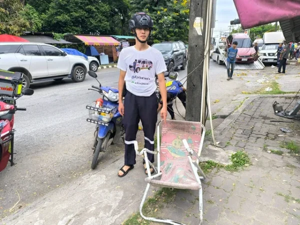 จากการให้สัมภาษณ์ของนายกิตติเดช พ่อค้าขายส้มได้ให้สัมภาษณ์ว่า ปกติตนขายส้มเสร็จก็จะมานอนพักที่เตียงพับอยู่เป็นประจำ แต่วันนี้ตนยังไม่ได้ลงไปนอน ก็ได้มีรถยนต์เก๋งพุ่งชนรถจักรยนต์ล้มแล้ววิ่งเข้ามาชนด้านข้างของรถปิกอัพแล้วพุ่งไปชนเสาเหล็กร้านค้าพัง และได้พบเตียงนอนแบบพับพังติดอยู่ด้านหน้ารถเก๋งด้วย ส่วนภรรยาได้รับบาดเจ็บกู้ภัยสว่างอริยะนำส่งโรงพยาบาลแล้ว