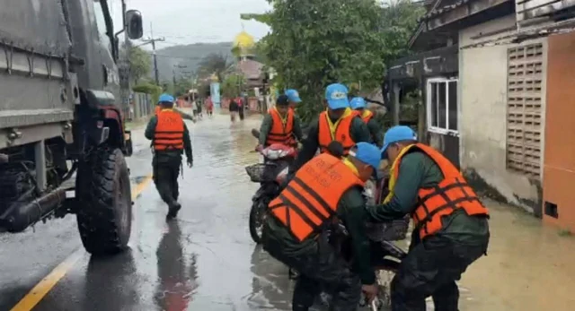 สตูล-ทหาร ลุยน้ำท่วมเข้าช่วยเหลืออพยพประชาชนสู่พื้นที่ปลอดภัย ขนย้ายสิ่งของขึ้นที่สูง ลำเลียงถุงยังชีพ และดูแลความปลอดภัยให้กับพี่น้องผู้ประสบภัย
