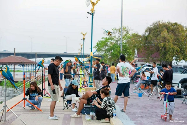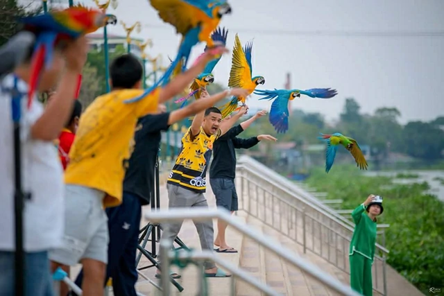 โดยในงานจะนำนกแก้วมาคอร์หลายสีสันมาปล่อยบินอิสระ ที่มีการฝึกฝนให้นกได้ออกโบยบินในพื้นที่กว้างได้อย่างอิสระและสามารถกลับมาหาผู้เลี้ยง หรือกลับมาตามคำสั่งของเจ้าของได้ คล้ายกับการฝึกสุนัขให้ทำตามสั่ง ซึ่ง มาคอว์จัดเป็นนกในตระกูลปากขอที่มีขนาดใหญ่ นิยมเลี้ยงกันมากเนื่องจากมีสีสันที่สวยงาม เชื่อง เป็นนกที่ชอบเข้าสังคมและน่ารักสามารถเป็นเพื่อนที่ดีได้ มีความฉลาดมาก มีความสามารถในการเลียนแบบเสียงคนได้