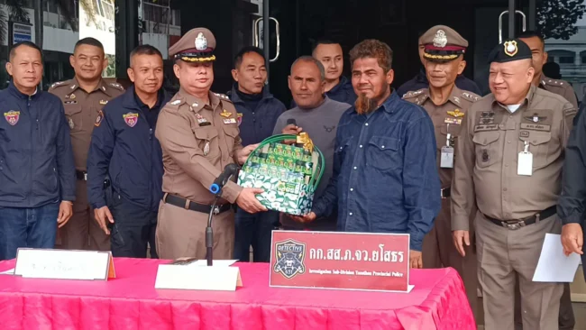 สืบเนื่องมาจากเมื่อวันที่ 18 พ.ย.68 ศูนย์ป้องกันและปราบปรามการโจรกรรมรถ(ศปจร.)ภ.จว.ยโสธร โดย พ.ต.อ.บุรภัช บุรีภักดี รอง ผบก.ภ.จว.ยโสธร พ.ต.อ.ภูมิ ทองโพธิ์ ผกก.สืบสวน ภ.จว.ยโสธร พ.ต.อ.เกรียงศักดิ์ ปัชโชโต ผกก. สภ.คำเขื่อนแก้ว ได้สั่งการให้ชุดจับกุมประกอบด้วย พ.ต.ต.สาคร วรแก่นทราย สว.สส.สภ.คำเขื่อนแก้ว พร้อมชุดสืบสวน สภ.คำเขื่อนแก้ว กก.สส.ภ.จว.ยโสธร สภ.เขมราฐและสภ.ค้อวัง ทำการขยายผลและจับกุม นายสมปอง หรือต้อม พร้อมของกลางดังกล่าว ซึ่งสามารถจับกุมได้ที่บริเวณบ้านม่วงเฒ่า ต.หัวนา อ.เขมราฐ จ.อุบลราชธานี