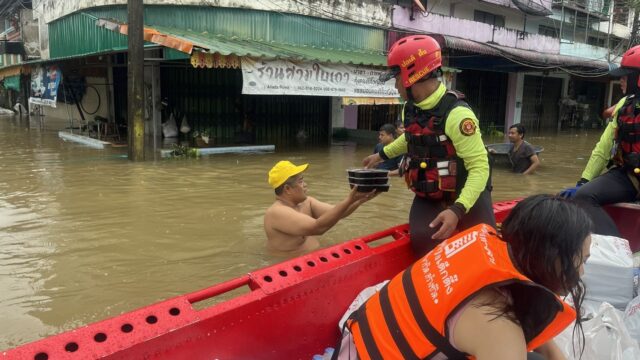 มูลนิธิป่อเต็กตึ๊ง โดยทีมบรรเทาสาธารณภัย รวม 50 นาย พร้อมอุปกรณ์กู้ภัย กู้ชีพ รถกู้ภัย กู้ชีพยกสูง 4×4 ยังคงเร่งลุยเข้าพื้นที่ อพยพผู้ประสบภัยน้ำท่วมชาวหาดใหญ่ ประกอบอาหารปรุงสุกแจกจ่ายอาหารกล่องพร้อมน้ำดื่ม เสื้อชูชีพ ยาสามัญประจำบ้าน และอาหารสุนัขและแมวต่อเนื่อง