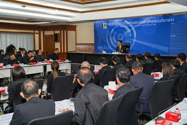 วันที่ 25 พฤศจิกายน 2568 เวลา 13.30 น. ณ ห้องประชุม 1 อาคาร 3 ชั้น 5 กรมป้องกันและบรรเทาสาธารณภัย นายชานน วาสิกศิริ ผู้ว่าราชการจังหวัดนครนายก เข้าร่วมการประชุมกองอำนวยการป้องกันและบรรเทาสาธารณภัยกลาง (กอปภ.ก.) เพื่อเตรียมความพร้อมรับมือสถานการณ์ฝุ่นละอองขนาดเล็ก (PM2.5) ในพื้นที่ภาคกลาง โดยมีนายศักดิ์ดา วิเชียรศิลป์ รัฐมนตรีช่วยว่าการกระทรวงมหาดไทย เป็นประธานในการประชุม ซึ่งการประชุมในครั้งนี้มี นายชัยวัฒน์ ชื่นโกสุม รองปลัดกระทรวงมหาดไทย ผู้ว่าราชการจังหวัด รองผู้ว่าราชการจังหวัด และหัวหน้าสำนักงานป้องกันและบรรเทาสาธารณภัยจังหวัดในพื้นที่ภาคกลาง