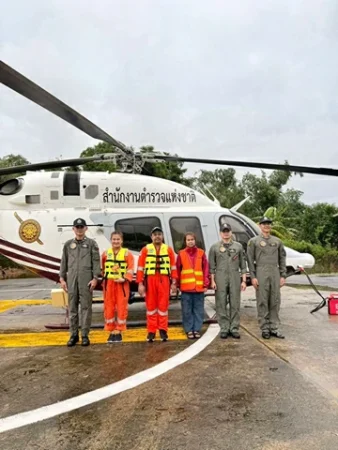 พล.ต.ท.ชัยต์พจน ระบุว่า ผบ.ตร.ได้สั่งการให้ หน่วยบินยะลา จัดกำลังอากาศยานสนับสนุนเร่งด่วน ประกอบด้วยเฮลิคอปเตอร์ แบบ ฮ.412 และ ฮ.429 จำนวนหลายเที่ยวบิน เพื่อตั้งฐานปฏิบัติการ (Base) ที่ หน่วยบินสงขลา ตำรวจตระเวนชายแดนภาค 4 ให้พร้อมทำการบินค้นหา ช่วยเหลือ และลำเลียงสิ่งของจำเป็นเข้าสู่พื้นที่ประสบภัยทันที