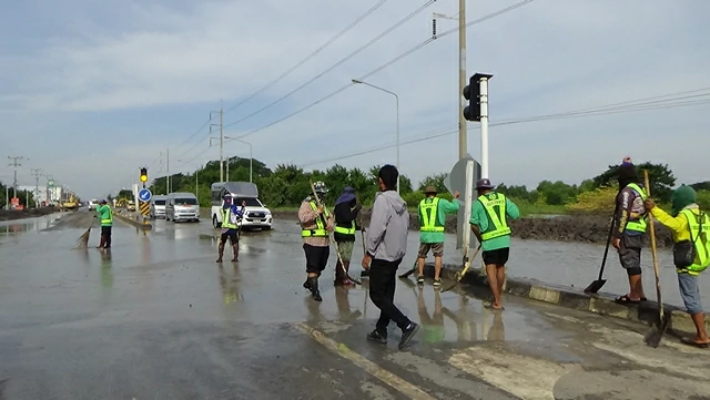 อ่างทอง-ทางหลวงอ่างทอง ระดมเครื่องสูบน้ำพร้อมกำลังคน เร่งเปิดถนนสายป่าโมก-สุพรรณบุรี หลังถูกน้ำท่วมขังนานนับเดือน