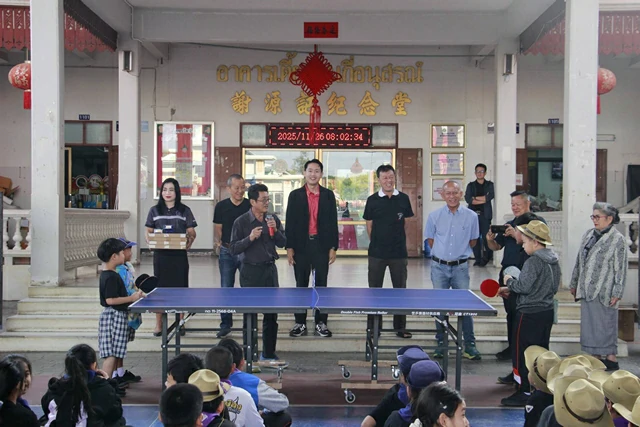 วันนี้ 26 พย.68 นายอุทัย ศรีสุขวสุ ประธานมูลนิธิร่วมมิตรสุโขทัย นายกมลศิลป์ เดชะศาศวัต ประธานศาลเจ้าปุงเถ่ากง-ม่า สุโขทัย พร้อมคณะกรรมการศาลเจ้าปุงเถ่ากง-ม่า สุโขทัย คณะกรรมการสมาคมพ่อค้าจังหวัดสุโขทัยมอบโต๊ะเทเบิลเทนนิส จำนวน 5ชุด และอุปกรณ์ฝึกซ้อมกว่าสามหมื่นบาท มีนายสุรพล อังศิริจินดา นายกสมาคมพ่อค้าจังหวัดสุโขทัย และประธานโรงเรียนกวางตงสุโขทัย พร้อมผู้บริหาร ครู นักเรียนให้การต้อนรับคณะพร้อมกล่าวขอบคุณคณะผู้มอบอุปกรณ์ โครงการจัดซื้อโต๊ะเทเบิลเทนนิส พร้อมอุปกรณ์มีผู้ร่วมสนับนุนในโครงการครั้งนี้