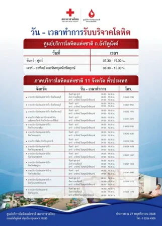 ศูนย์บริการโลหิตแห่งชาติสภากาชาดไทย ชวนคนไทยทั่วประเทศ รวมพลังน้ำใจคนไทยให้โลหิต พ้นวิกฤติมหาอุทกภัยภาคใต้ ช่วยเหลือผู้ป่วยที่ต้องการโลหิตในโรงพยาบาลพื้นที่ภาคใต้กว่า 135 แห่ง บริจาคโลหิตได้ที่ ศูนย์บริการโลหิตแห่งชาติ สภากาชาดไทย และภาคบริการโลหิตแห่งชาติ 11 จังหวัด ทั่วประเทศ