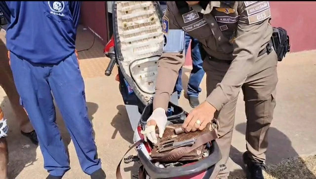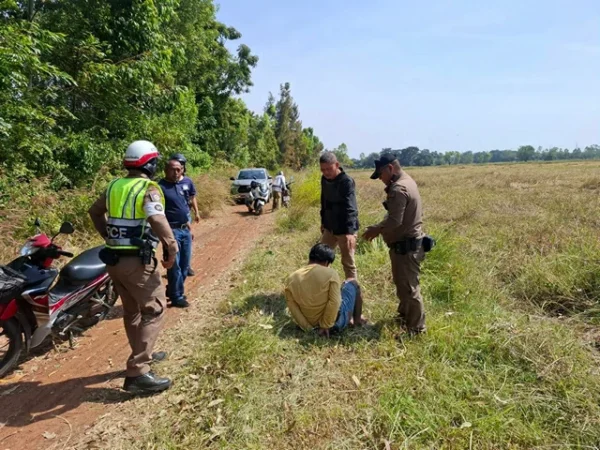 จากนั้นเจ้าหน้าที่ได้ให้เปิดเบาะรถมอเตอร์ไซค์ ระหว่างที่กำลังเปิดเบาะอยู่นั้น คนซ้อนรถทราบชื่อต่อมานายสุธากร อายุ 27 ปี อยู่บ้านเลขที่ 191 หมู่ที่ 2 ต.หนองกง อ.นางรอง จ.บุรีรัมย์ ตัดสินใจวิ่งหลบหนีต่อหน้าตำรวจ เจ้าหน้าที่ได้วิ่งตามแล้วได้ตัวมาขณะวิ่งอยู่กลางทุ่งนา