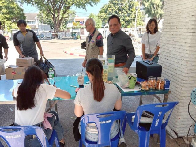 ว่าที่.รต.ธนิตศักดิ์ ดารามัน อดีตผู้สมัคร ส.ส.บัญชีรายชื่อพรรคประชาธิปัตย์ ผู้เคยดำรงตำแหน่งคณะทำงานรัฐมนตรีช่วยการกระทรวงมหาดไทยเยี่ยมศูนย์รับบริจาคช่วยเหลือผู้ประสบอุทกภัย