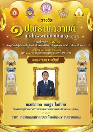 โดย พลเรือเอก เชษฐา ใจเปี่ยม โฆษกพิเศษ ศูนย์อำนวยการรักษาผลประโบชน์ของชาติทางทะเล (ศรชล.)ได้รับรางวัลสาขาเกียรติคุณผู้ทำคุณประโยชน์ต่อประเทศชาติดีเด่น ณ หอประชุมคุรุสภา จัดโดยมูลนิธิคุ้มเกล้าเยาวชนคนสร้างชาติ
