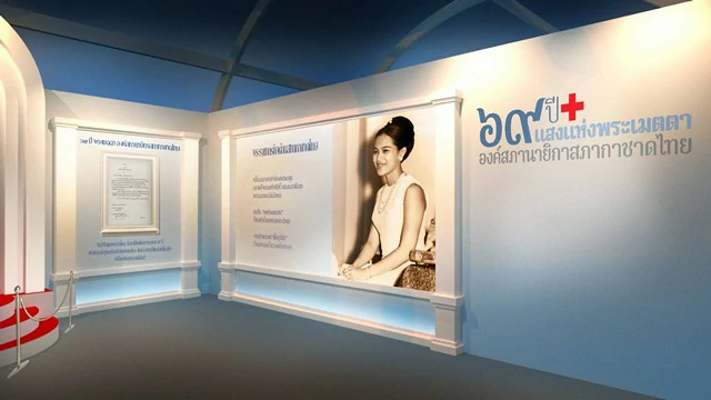 เริ่มต้นด้วย โซน“แสงแห่งพระเมตตา” มีการจัดแสดงพระเก้าอี้ โต๊ะทรงงานฯ และการจัดแสดงภาพพระราชกรณียกิจเพื่อให้ประชาชน น้อมรำลึกในพระเมตตาที่ทรงขับเคลื่อนภารกิจด้านมนุษยธรรมของสภากาชาดไทยตลอด 69 ปี โซน “พระราชกรณียกิจเพื่อทุกชีวิต” ที่จัดแสดงพระราชกรณียกิจ เพื่อการบรรเทาทุกข์ บำรุงสุขแก่ประชาชน อาทิ เหตุการณ์บ้านเขาล้าน พระเมตตาที่มีต่อการแพทย์ การบรรเทาทุกข์ผู้ประสบภัย ด้านการบริการโลหิต ด้านส่งเสริมคุณภาพชีวิต ผ่านแสงสีเสียงในการถ่ายทอดเรื่องราว โซน “พระเมตตาแห่งการแบ่งปัน” นำเสนอพระราชกรณียกิจด้านการหารายได้ ทรงดำริริเริ่มงานหารายได้ใหม่ ๆ โดยเฉพาะในงานกาชาด และโซน “แรงบันดาลใจจากพระเมตตา” จัดแสดงเป็นสวนดอกไม้ พร้อมข้อความพระราชดำรัสที่ทรงพระราชทานในโอกาสต่าง ๆ ผ่านการนำเสนอด้วยเทคนิคทางดิจิทัล ภายในนิทรรศการฯ ยังมีกิจกรรมเชิญชวนประชาชนร่วมบริจาคเงินเพื่อโดยเสด็จพระราชกุศลบำรุงสภากาชาดไทย ผู้บริจาคจะได้รับพระบรมฉายาลักษณ์ สมเด็จพระนางเจ้าสิริกิติ์ พระบรมราชินีนาถ พระบรมราชชนนีพันปีหลวง ในรูปแบบโปสการ์ดอันทรงคุณค่ายิ่ง จำนวน 12 ภาพ จำนวน 60,000 ใบ เป็นที่ระลึก