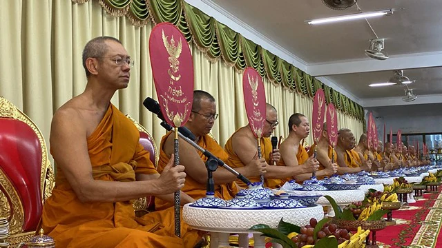 ทั้งนี้พระมหาเถระ เจริญพระพุทธมนต์ โดยมีพระเดชพระคุณ 1.พระพรหมกวี จภ. ต วัดกัลยาณมิตรฯ กทม. 2 พระพรหมวชิราทร จภ.13 วัดเทวราชกุญชร กทม. 3.พระราชปัญญาโสภณ รจภ.13 วัดบพิตรพิมุข วรวิหาร กทม. 4.พระราชธรรมเมธี ป.ธ.9 ดร. จจ. จันทบุรี วัดโค้งสนามเป้า 5.พระอรรถโมลี จอ.เมือง วัดไผ่ล้อม(พระอารามหลวง) 6.พระศรีศาสนโมลี เลขฯ จภ.13 วัดเทวราชกุญชร กทม.