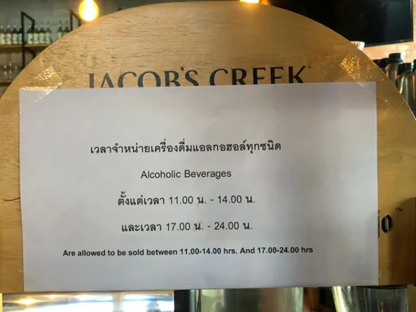 ทั้งนี้ช่วงเวลาที่ต้องระวังในการบริโภค คือเวลาห้ามขาย และเวลาห้ามขายเครื่องดื่มแอลกอฮอล์ตามประกาศที่เกี่ยวข้องคือ ช่วงเช้า 00.00 น. ถึง 11.00 น. ช่วงบ่าย 14.00 น. ถึง 17.00 น. ทำให้การนั่งดื่ม ติดลม หรือ นั่งแช่ ในร้านขายหรือให้บริการ หลังเวลา 00.00 น. (เที่ยงคืน) เป็นต้นไป หรือช่วงบ่าย 14.00 – 17.00 น. จึงอาจเข้าข่ายฝ่าฝืนและถูกปรับได้