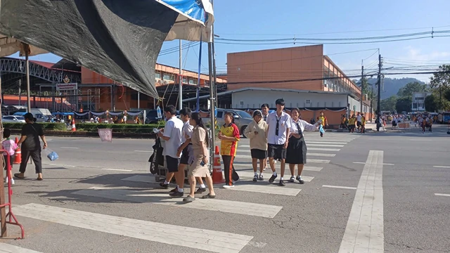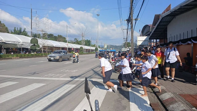 ขณะที่เด็กนักเรียนทั้งระดับเด็กเล็กชั้นอนุบาล ถึงชั้นมัธยมศึกษาอีกจำนวนมากต้องใช้ทางม้าลายข้ามกลับบ้านและพบว่าฝั่งตรงข้ามโรงเรียนเป็นที่ตั้งของหน่วยงานราชการมีการจัดงาน กิจกรรมค้าขายสินค้าเร่ มีการวางเต็นท์เพื่อขายสินค้าทั้งของกินของใช้ตลอดแนว
