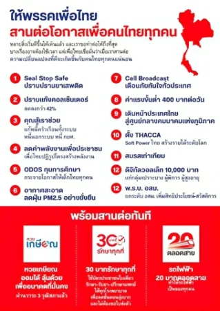 ซึ่ง นายสมศักดิ์ เทพสุทิน ได้กล่าวชี้แจงถึงนโยบายของพรรคเพื่อไทยในอดีตที่ผ่านมา รวมถึงกล่าวว่า ขอให้พรรคเพื่อไทยได้สานต่อเพื่อสร้างโอกาสให้กับคนไทยทุกคน อีกทั้งยังกล่าวเพิ่มเติมว่าหลายสิ่งเริ่มต้นดีขึ้นให้เห็นในยุคที่พรรคเพื่อไทยเป็นรัฐบาลและเราขอทำต่อไปให้ถึงที่สุดบางเรื่องอาจต้องใช้เวลาแต่พรรคเพื่อไทยเชื่อมั่นว่าเราสามารถสานต่อความเปลี่ยนแปลงที่ดีให้เกิดขึ้นกับคนไทยทุกคนในอนาคตได้อย่างแน่นอน โดยได้ชู 12 นโยบาย 3 เรื่อง ที่พร้อมสานต่อทันที นั่นคือเรื่องหวยเกษียณออมได้ลุ้นด้วยเพื่ออนาคตที่มั่นคง , 30 บาทรักษาทุกที่ , รถไฟฟ้า20บาทตลอดสาย