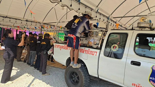 ที่ เทวาลัยมหากาลีอวตารจักรวาลชนนี นางสาวอำพร แก้วแสง ประธาน กต.ตร. สภ.เมืองพัทยา นำทีมเจ้าหน้าที่ตำรวจ สภ.เมืองพัทยา เจ้าหน้าที่อาสาตำรวจพัทยา และทีมจิตอาสา ร่วมกันลำเลียงถุงยังชีพ เครื่องอุปโภคบริโภค และสิ่งของจำเป็น จำนวน 500 ชุด ขึ้นรถบรรทุก 6 ล้อ เพื่อส่งต่อให้ผู้ประสบอุทกภัยในพื้นที่ภาคใต้ โดยจะมอบผ่านมูลนิธิสว่างบริบูรณ์ ก่อนกระจายความช่วยเหลือไปยังพี่น้องในพื้นที่ประสบภัยต่อไป