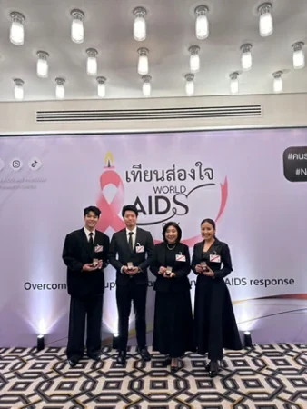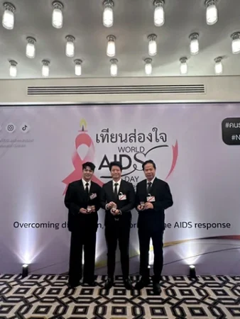 ผู้บริหาร – ศิลปิน บริษัท ที แอนด์ บี มีเดียโกลบอล เข้ารับประทานเหรีญที่ระลึกในงาน “เทียนส่องใจ” เนื่องในวันเอดส์โลก ครั้งที่ 33 ประจำปี 2568