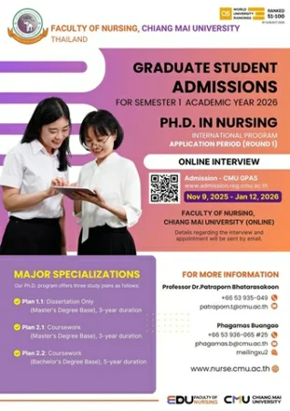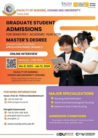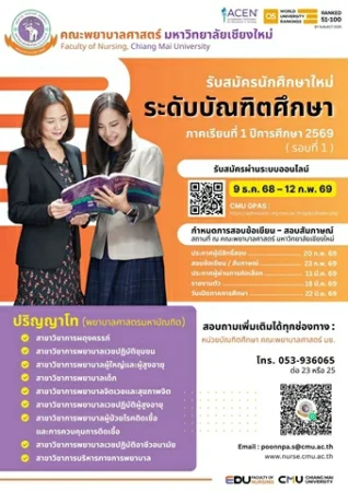 เชียงใหม่-คณะพยาบาลศาสตร์ มช.รับสมัครเข้าศึกษาต่อหลักสูตรระดับบัณฑิตศึกษา ปีการศึกษา 2569