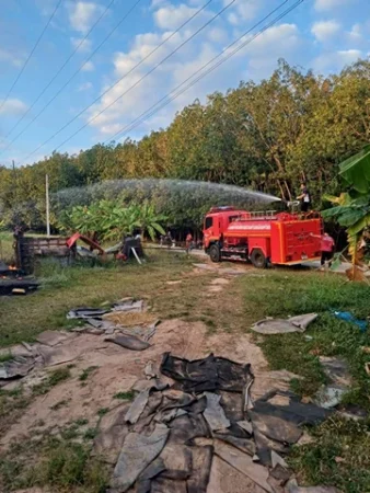 ที่เกิดเหตุพบเป็นบ้านชั้นเดียว ถูกเพลิงโหมลุกไหม้จนเสียหายทั้งหลัง เจ้าหน้าที่สามารถควบคุมเพลิงไว้ได้ในเวลาไม่นาน แต่สภาพบ้านถูกเผาวอดทั้งหลัง