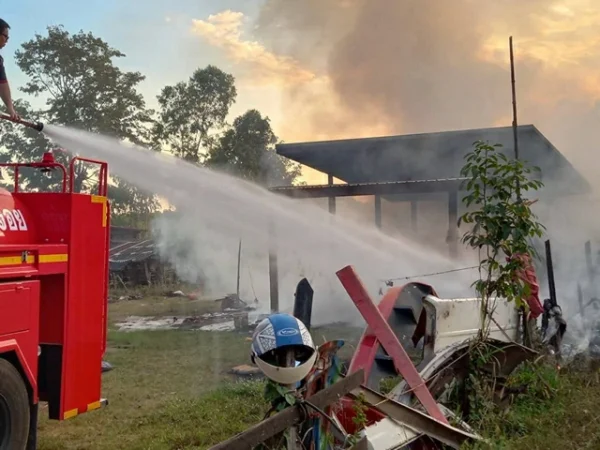 มุกดาหาร -ประชดแม่ไม่ให้เงินซื้อยา! หนุ่มนิคมคำสร้อยคลุ้มคลั่งจุดไฟเผาบ้านตัวเองวอดทั้งหลัง เจ้าหน้าที่คุมตัวดำเนินคดี